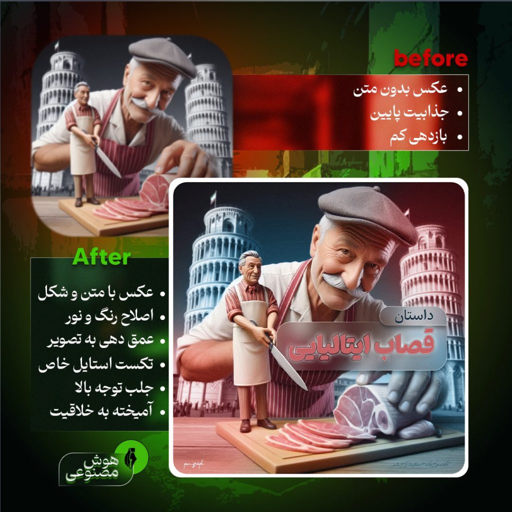 طراحی کاور پست مرتبط با مطلب آموزشی با دانش تخصصی پرامبت نویسی و طراحی با کمک هوش مصنوعی با رعایت اصول طراحی کاور پست و سوشال مدیا می توانید قبل و بعد این تصویر رو با کلیک کردن روی تصویر مشاهده کنید